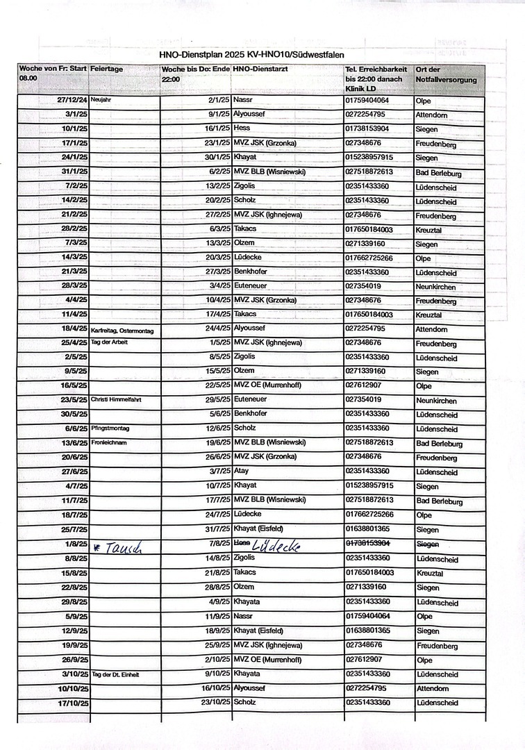 Die Praxis ist vom 1.9. bis einschließlich 15.9.25 geschlossen. Vertretung übernimmt Dr. Khayat/Siegen, sowie Fr. Dr. Euteneuer/ Neunkirchen (1.9-5.9.25)